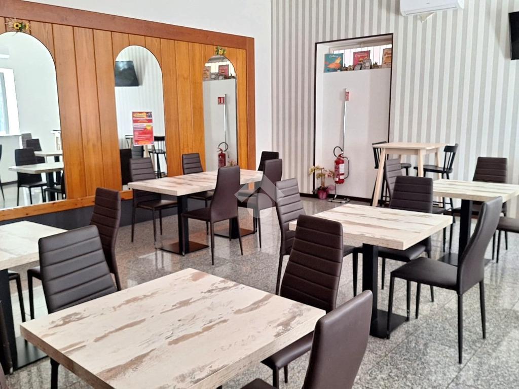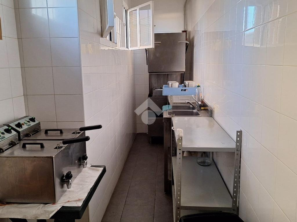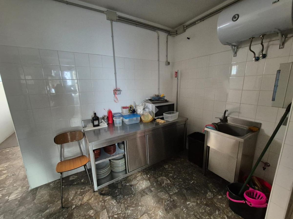 Adiacente alla zona principale si trova una sala dedicata ai tavoli, luminosa e accogliente, perfetta per la consumazione sul posto e per offrire ai clienti un ambiente confortevole e ben organizzato. Sul retro è presente una cucina separata, ideale per la preparazione dei piatti e completa degli spazi necessari per lavorare in piena efficienza.