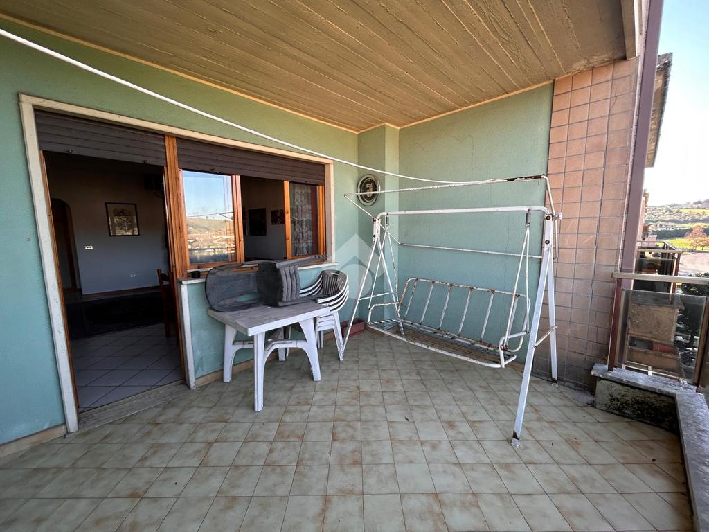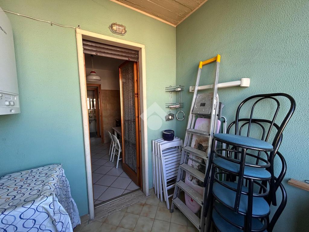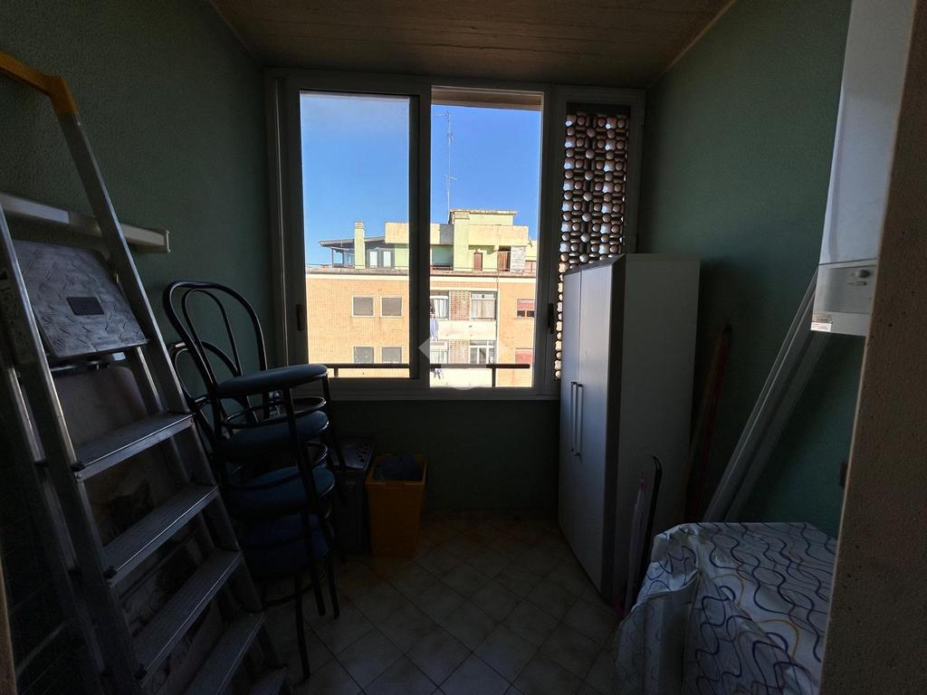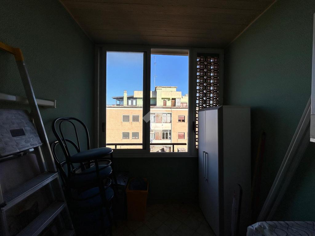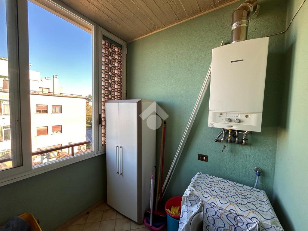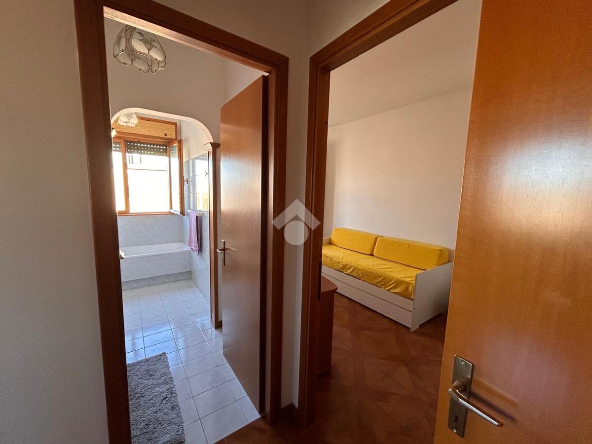 La cucina, separata e abitabile, è completamente attrezzata e vanta un secondo balcone verandato, chiuso con cura per creare un pratico spazio aggiuntivo ideale come lavanderia o zona dispensa.