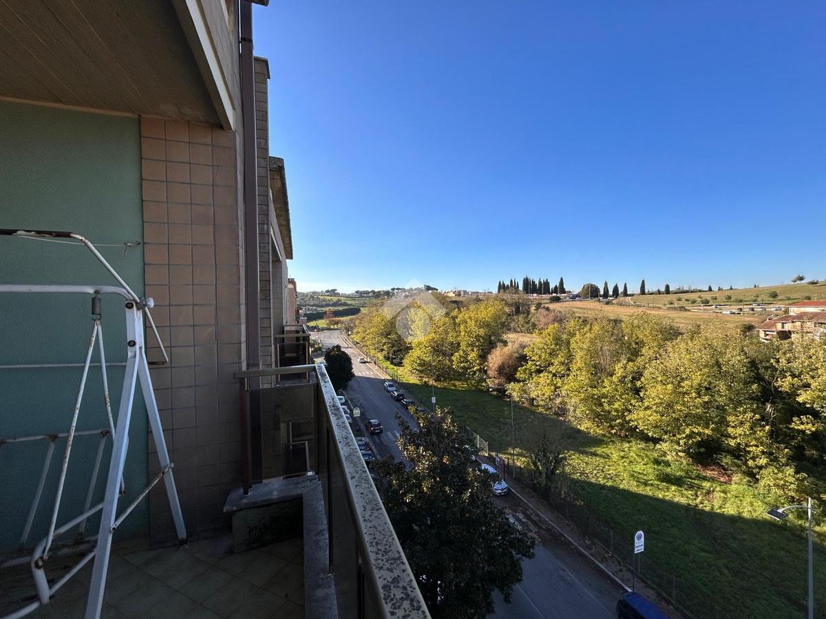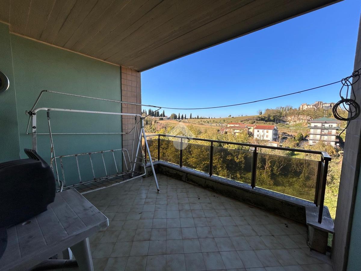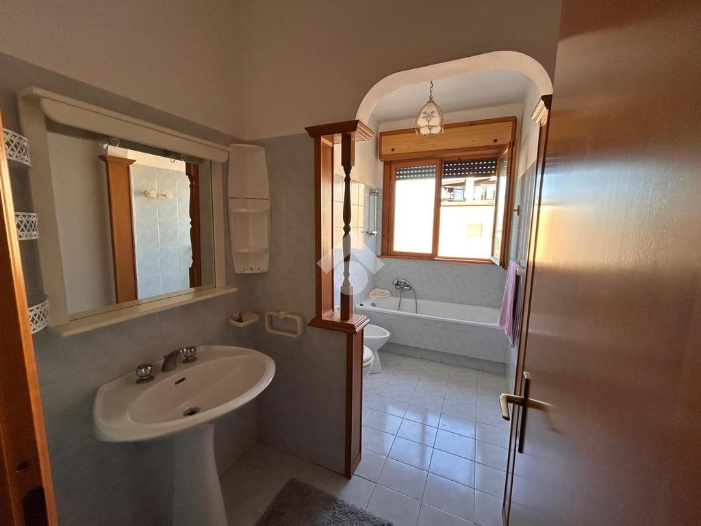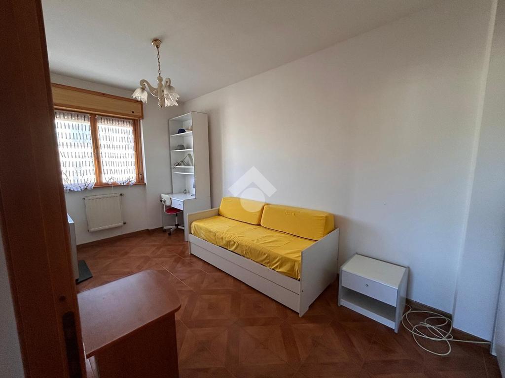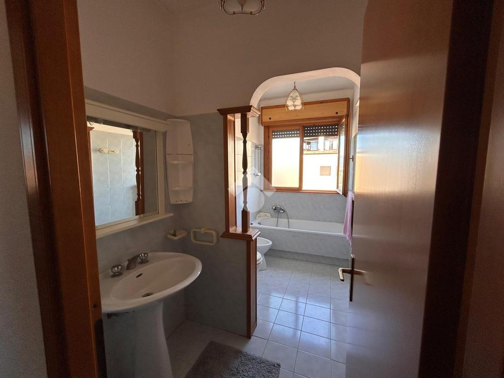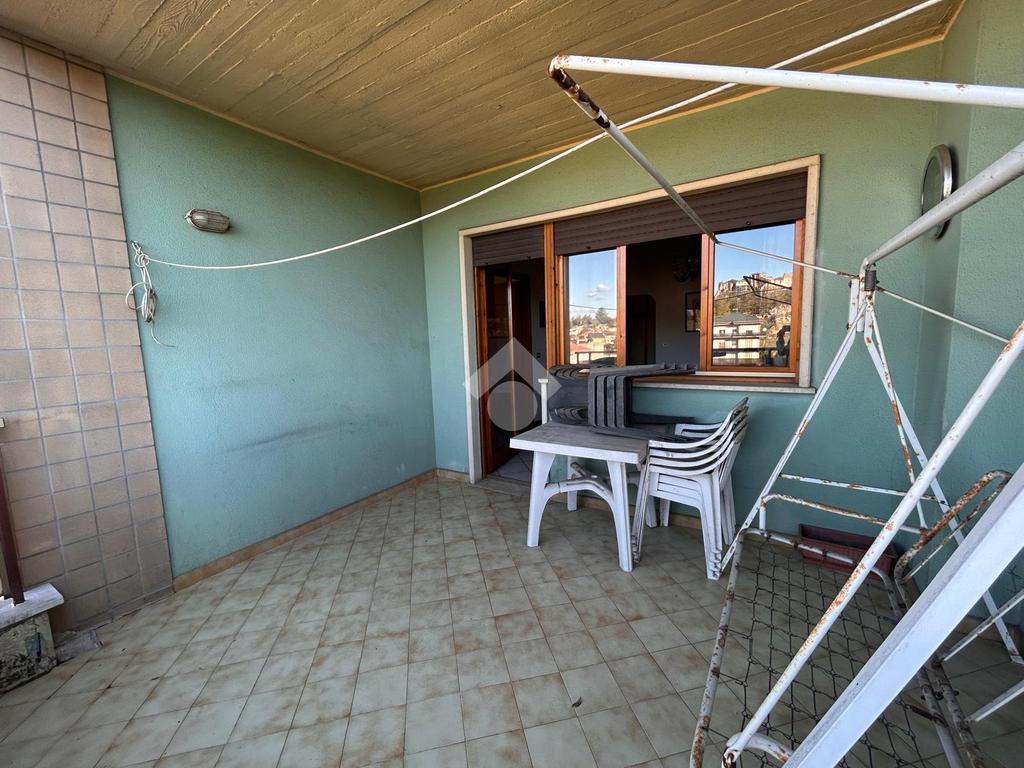 La cucina, separata e abitabile, è completamente attrezzata e vanta un secondo balcone verandato, chiuso con cura per creare un pratico spazio aggiuntivo ideale come lavanderia o zona dispensa.