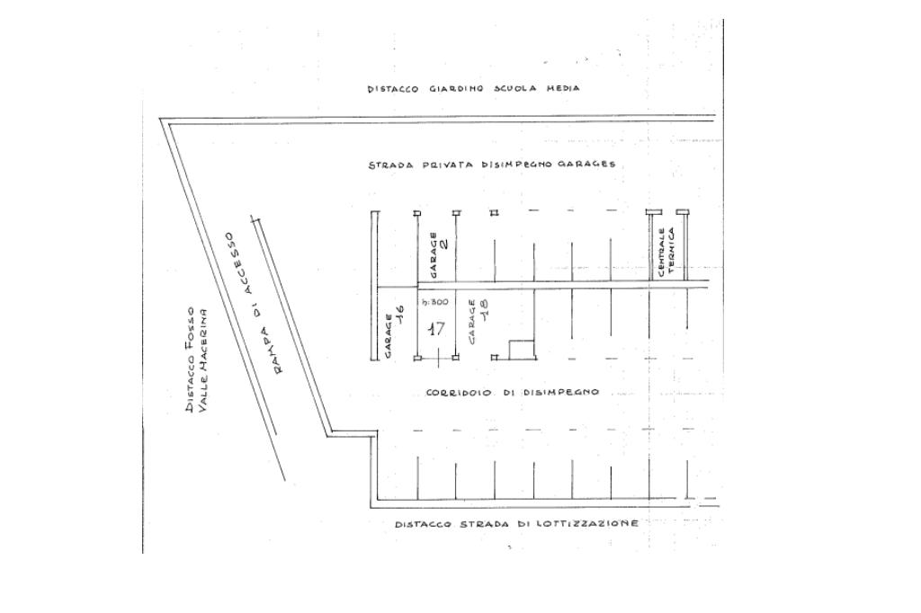 Situato in zona centralissima, questo box si distingue per l’accesso tramite strada privata in discesa, che conduce a una serie di box auto affiancati, ognuno con la propria serranda.