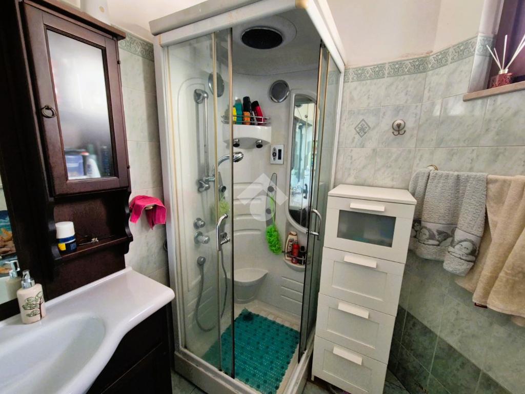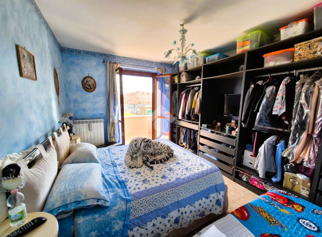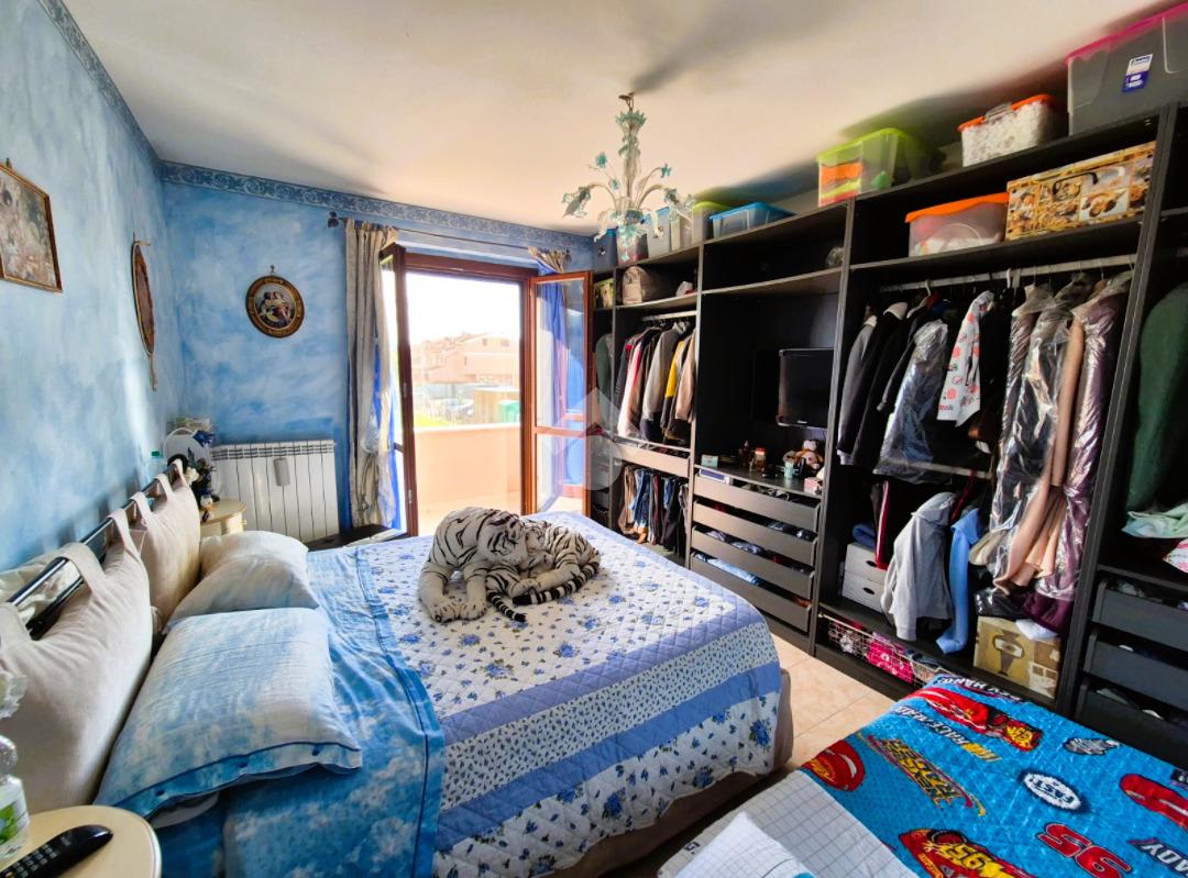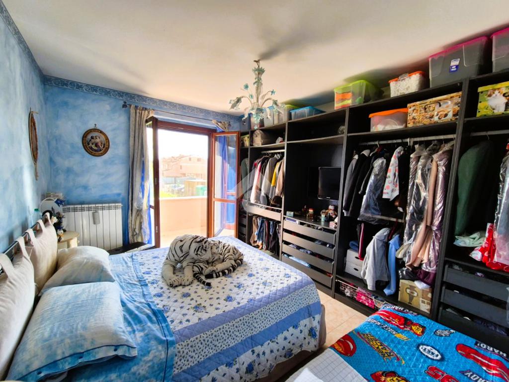 Salendo al primo piano, si accede alla zona notte, pensata per garantire tranquillità e comfort. La camera matrimoniale, ampia e luminosa, si apre su un terrazzo privato che regala una piacevole vista sul quartiere circostante, un piccolo rifugio dove respirare aria fresca e godersi momenti di relax. Sullo stesso piano, un bagno con vasca, curato e accogliente, offre un ambiente intimo dedicato al benessere, pur essendo cieco.