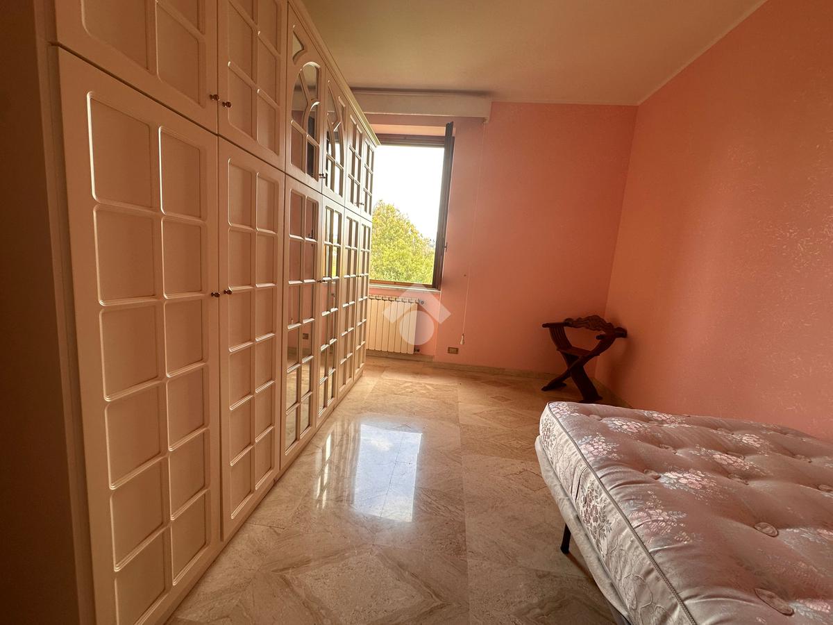 Il piano superiore ospita la zona notte, organizzata da un comodo corridoio che separa tre camere da letto luminose, uno studio versatile, un soggiorno, la cucina e un bagno. Due delle camere godono di accesso ai balconi, perfetti per momenti di relax all’aperto e per ammirare il suggestivo panorama sul verde circostante.