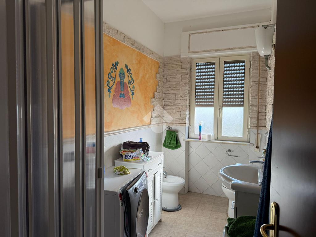 A disposizione dell'intero appartamento un bagno finestrato dotato di box doccia.